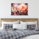 Uma vívida aproximação de peões e rosas florescentes, apresentando pétalas suaves e fluentes em tons de rosa, pêssego e branco contra um fundo escuro. Este belo trabalho de arte floral traz vida e elegância a qualquer quarto.
