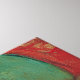 The canvas is dominated by vibrant, clashing colors—the intense, fiery red background contrasts sharply with the unsettling, sickly greens and yellows of the artist's skin, a technique that embodies the anxiety and disillusionment of the era. The bold brushwork and piercing gaze make this more than just a portrait; it's a statement piece that demands attention and contemplation.