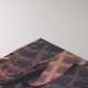 Uma imagem de perto apresenta uma folha de outono vibrante, multicolorida, situada numa superfície texturizada de betão. A folha exibe tons de rosa, vermelho e amarelo, indicando as estações em mudança. Várias outras folhas caídas estão espalhadas no fundo, somando-se à atmosfera autóctone. Uma segunda exposição do horizonte da cidade sobrepôs-se ao concreto, criando um efeito visual interessante.
