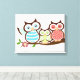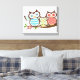 Família Coruja Bonita. Coruja-bebê sentada no galho de uma árvore com mama coruja e pai. Gráficos por Trina clark