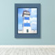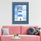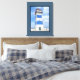 Design com tema náutico com decoração de farol com cor d'água em quadro azul escuro. É possível mudar a cor de fundo e adicionar uma diferente à design com sua escolha.