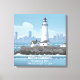 Arte colorida do Farol de Boston e a paisagem da cidade ao fundo. Faça um passeio de barco pelo Porto de Boston para ver este farol magnífico. Perfeito para qualquer pessoa que ama esta parte fantástica de Massachusetts.