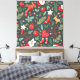 Um padrão festivo de férias com renas, ornamentos e verde sazonal sobre fundo escuro. Perfeito por adicionar um toque de capricho à decoração de Natal.