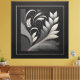 An elegant line‑art composition featuring flowing leaf‑like structures framed by a refined double border. The fine white curves on deep black create a sophisticated and modern artwork that enriches the Filigran in Black Collection.