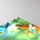 Chamas cor laranja lamber um fundo azul de Cobalto e Aqua Verde