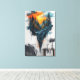 Surrealist art of a suspended forest on a floating island with vibrant sunset. Watercolor style with artistic splatters. Perfect for murals, interior decoration and posters. Bring nature and imagination to your space with this calm and inspiring work in warm and cool colors. Ideal for modern rooms.