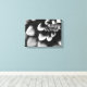 A elegante Impressão de Canvas de Flor de Flor Negra e Branca acrescenta um sotaque floral à decoração de sua casa ou escritório. Este bonito impressão botânico personalizado apresenta uma fotografia floral a preto e branco que fecha as pétalas florais de uma flor de dahlia com pequenas gotículas de água.
