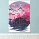 Arte vetorial original de uma cerejeira floresceu na natureza durante o pôr do sol.