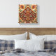 Floral ornament with symmetrical design, featuring stylized flowers, leaves, and tendrils in a rich color palette of reds, oranges, greens, and blues, set against a cream-colored background.