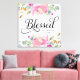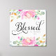Design elegante com flores de aquarela cor-de-rosa macia com verde-verde e tipografia desenhada à mão "Bênçãos". Este belo sotaque para sua casa é personalizado com seu nome e data. Correspondendo aos itens "Acredite" e "Fé" disponíveis. Perfeito para o quarto ou área viva, faz um presente de excelente! Design ©Rosalind Moore, Design de Cherry Lane.