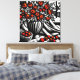 A symphony of reds and oranges unfolds in this captivating floral arrangement. A striking vase holds a bouquet of vibrant blooms, while ripe fruit spills onto a draped cloth. This artwork captures the essence of a sun-drenched afternoon, bringing warmth and vitality to your space.