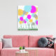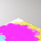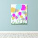Cena de flor pintada de cor d'água. As flores são pintadas em amarelo, azul, fúcsia e cinzas. Cérebros verdes e erva com céu azul por toda a parte.
