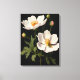 Esta pintura impressionante apresenta flores brancas delicadas contra um fundo preto dramático. A maneira perfeita de adicionar um toque de sofisticação à sua decoração doméstica.