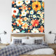 Esta tela mostra uma design de tirar o fôlego de flores brancas, azuis e laranja-esmagadas colocadas sobre um fundo azul escuro profundo. As vibrantes flores vermelhas-alaranjadas contrastam lindamente com as pétalas brancas e azuis macios, criando um visual impressionante e elegante. O rico pano de fundo azul escuro melhora a profundidade e a sofisticação do padrão floral, fazer-o um ponto focal cativante para qualquer espaço. Impresso em canvas de alta qualidade com cores vivas e resistentes a apagões, este trabalho de arte traz uma beleza duradoura para sua casa ou escritório. Com suas cores ousadas e charme inspirado na natureza, ele adiciona calor, elegância e um toque de talento artístico a qualquer parede.