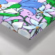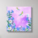 Lindas flores azuis e brancas sobre um fundo roxo de uísque com libélulas coloridas.