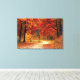 Uma rodovia cênica de pedras e areia através de uma bela floresta de lindíssimos troncos negros e carvoeiros de meia-noite, com cores vibrantes das folhas do outono de rubi, ouro e citrino!