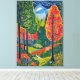 Um vibrante impressão de linfote em um estilo de arte popular inspirado por Marc Chagall, mostrando uma cena de floresta balbuciana. Árvores fantásticas, cores vibrantes e detalhes brincalhões evocam um senso de magia e maravilha.