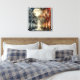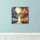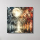 Você caminhou na floresta debaixo da lua de cheio? Esta é uma representação abstrato. As árvores parecem ser idênticas e só veem filas e filas de troncos de árvores e suas folhas com pouca cor à noite. Só a lua atravessando a cobertura das árvores.