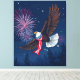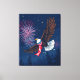 Impressão Em Tela Flying Bald Eagle with USA Flag Scarf & Fireworks