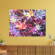 Folhas de carvalho caídas coloridas vibrantes num corpo de água.