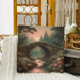 Discover the captivating allure of a forgotten ivy-covered bridge nestled deep within a misty twilight forest. This vintage-inspired digital artwork evokes the nostalgic charm of overgrown nature reclaiming a piece of forgotten architecture. Set during the golden-pink glow of twilight, the scene captures a mysterious stone bridge blanketed in moss, creeping ivy, and desert succulents—resting silently above a hidden stream. A gentle mist rolls through the forest floor, wrapping the ancient stonework in a soft haze. The background fades into dreamlike fog, with barely-visible silhouettes of distant trees and tangled branches.