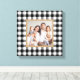 Esta canvas de arte de Natal estilo fazenda apresenta um espaço de fotos de família quadrado personalizado, formado por uma borda bronzeada, com verificação de búfalo preto e branco / fundo com padrão de xadrez. Dica da foto: recorte sua foto em forma quadrada antes de carregar.