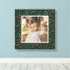 Esta bela impressão de canvas de Natal apresenta um padrão floral e verde desenhado pela mão em cores clássicas e tradicionais de Natal, vermelho, verde e marfim, sobre um fundo de cor personalizado (mostrado em verde escuro). Um quadro de cor de marfim permite que sua foto se destaque contra o fundo. Bonita decoração que ajustado qualquer casa, seja seu olhar tradicional, rústico, contemporâneo, casinha, fazenda ou moderno.