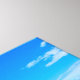 Tela impressa com uma bela fotografia. Uma praia branca arenosa com água azul azure. Relaxando a imagem com um céu ensolarado e um surf espumante gentil com algumas folhas tropicais bonitinhas moldando a imagem.