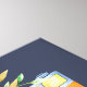 Uma tela impressa com o ditado: Fotografia é meio que minha coisa. Projetado com uma ilustração aquosa de uma câmera laranja e um buquê floral descansando no topo. As flores do buquê são rosas claro e laranja com folhas verdes, um bonito arranjo floral.