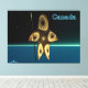 Uma imagem fractal em tons castanhos sugerindo um caçador Inuit altamente estilizado, vestindo roupas tradicionais de pele, segurando um arpão com cabeça de marfim. A imagem é sobreposta a um fundo que representa o inverno polar escuro. A leitura de texto "Canadá" também aparece em azul e branco brilhantes.