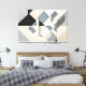 Interlocking geometric shapes in neutral tones—white, gray, black, and beige—create visual depth and harmony. Abstract art evoking architecture, frozen motion, and rational serenity: where chaos organizes into pure beauty.