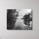 This contemplative black-and-white photograph captures a tranquil river framed naturally by overhanging trees and leaves. The stillness of the water mirrors the soft sky, while the gentle ripples and subtle reflections draw the eye toward the distant horizon. A quiet moment of connection between land, water, and sky—this image evokes peace, presence, and a return to nature. Ideal for mindfulness spaces, lake house decor, or anyone who finds calm near water.