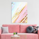 Fundo de textura rosa e azul, pintado com grandes pinceladas, decorado com folha de ouro. Textura Grunge.