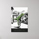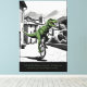 This cool T. Rex motivational canvas print puts a surreal twist on the classic “life is like riding a bicycle” quote. Rendered in a bold Banksy‑style stencil look, the artwork shows a determined T. Rex riding a unicycle down a cobbled street — tiny arms, massive attitude, and a whole lot of wobbling determination.