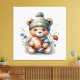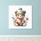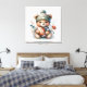A tela personalizada tem um tema de futebol com um toque feminino. Arte de excelente para adeptos de futebol. Design moderno tem flores com um urso bonito segurando uma bola. Personalize com o texto, nome ou frase desejados. Use a modelo para criar sua própria impressão de tela personalizada.