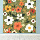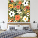 Um encantador padrão floral com flores silvestres vibrantes e folhas exuberantes num pano verde-terra. Perfeito por adicionar um toque de elegância rústica a qualquer espaço.