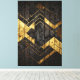 Linhas e formas douradas emergem sobre madeira escura carbonizada, misturando luxo e rusticidade. Uma composição elegante que evoca equilíbrio, força e sofisticação atemporal.