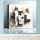 A refined abstract composition built from layered geometric forms in white, beige, and soft brown tones, accented with subtle gold lines. The interplay of depth, structure, and clean architectural elements creates a modern, sculptural presence. Ideal for contemporary interiors, offices, studios, and gallery‑style spaces.