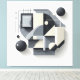A modern three‑dimensional composition featuring circles, rectangles, triangles, and layered geometric forms. Subtle shadows and overlapping elements create sculptural depth within a balanced monochrome layout. This piece belongs to the 3D Collection and adds a refined, contemporary design presence to any interior.