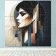 Ein modernes abstraktes Porträt, das skulpturale Gesichtszüge mit geschichteten geometrischen Formen in warmen Beige‑, Braun‑ und Blautönen verbindet. Das kreisförmige Element hinter dem Kopf sorgt für Balance und Fokus, während die sich überschneidenden Linien und Strukturen architektonische Tiefe erzeugen. Dieses Kunstwerk verleiht Wohnräumen, Studios, Büros und galerieartigen Innenbereichen eine elegante, zeitgenössische Präsenz.
