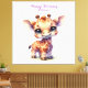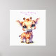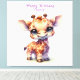 Uma girafa de bebê bonitinha ao estilo de desenho animado com olhos grandes e expressivos e um sorriso alegre. Fica numa pose brincalhona, o humor geral é alegre e caprichoso, perfeito para presentes infantis.