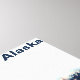 Uma imagem estilizada de uma geleira costeira no sul do Alasca, como vista do alto mar. Pequenos pedaços de gelo flutuam na água e a cena se reflete na superfície da água. Text reading, Alaska" (Leitura de texto, Alasca) também é exibido. Você pode remover isso facilmente se desejar. Adicione seu próprio texto adicional.