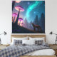 Step into a dreamlike fantasy world where glowing bioluminescent mushrooms light up a mystical forest beneath a star-filled sky. This enchanting artwork features a curious fox surrounded by ethereal colors, cosmic nebula vibes, and magical night energy. Perfect for fantasy lovers, nature dreamers, and fans of surreal woodland aesthetics inspired by imagination, wonder, and cosmic beauty.