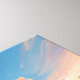 The digital brushwork is vivid and expressive—broad strokes of coral, rose, and amber melt into cool lavender shadows, giving the clouds a painterly, almost spiritual presence. Birds scatter, aircraft drift overhead, and the city begins to awaken in gradients of light and vapor.