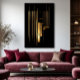 Slender and solid golden lines dance against absolute black, accompanied by circles and rectangles evoking rhythm, silence, and elegance. A visual score where every element vibrates with precision—high-impact minimalist art, perfect for spaces valuing sophistication, balance, and monumental presence.