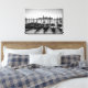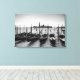 Canvas de paisagem impressão de uma fileira de gondolas tradicionais na água com Veneza ao fundo na Itália a preto e branco. decoração de excelente na sua parede!