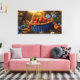 Uma grande cesta de morangos perto de um jardim floral com galinhas e pássaros, exuando calma e graça.