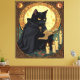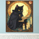 Impressão Em Tela Halloween Black Cat Reading A Book