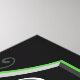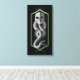 Confira este símbolo da Marca Negra, apresentando a icônica cobra enroscada saindo da boca de uma caveira no topo de um painel preto e verde alongado.