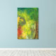 Bilden beskriver en känsla av att vara hemma. Det är därför färgerna är varma i grönt och gult. Konstverket är gjort i glädje. Glädje till naturen och den naturliga rörelsen.